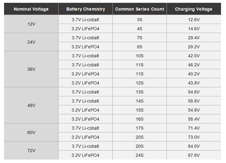 Zum Beispiel 7,4 V, 12 V, 24 V, 36 V, 48 V, 60 V, 72 V usw.
